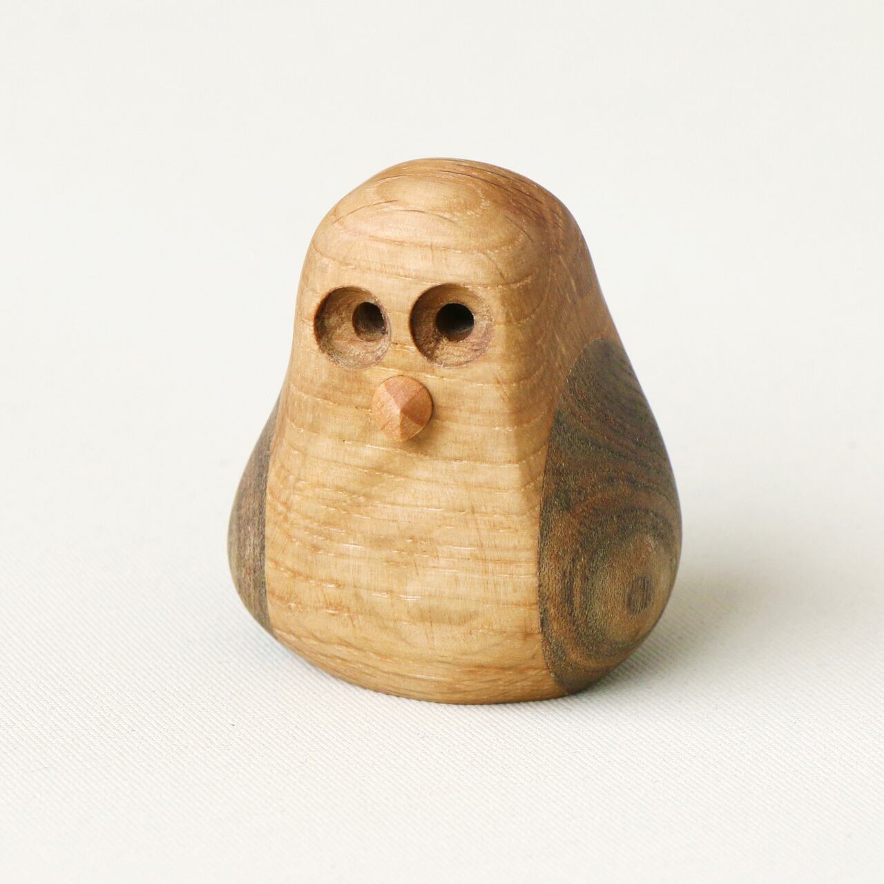 エゾフクロウが、首をかしげている様子をかたちにしました。