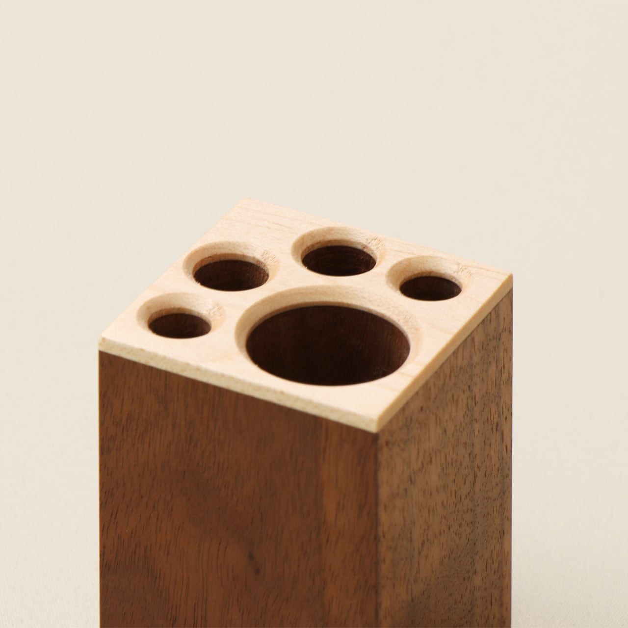 26mm、12mm、10mmの3種類の穴があり、さまざまな種類のペンや筆記具に対応可能です。
