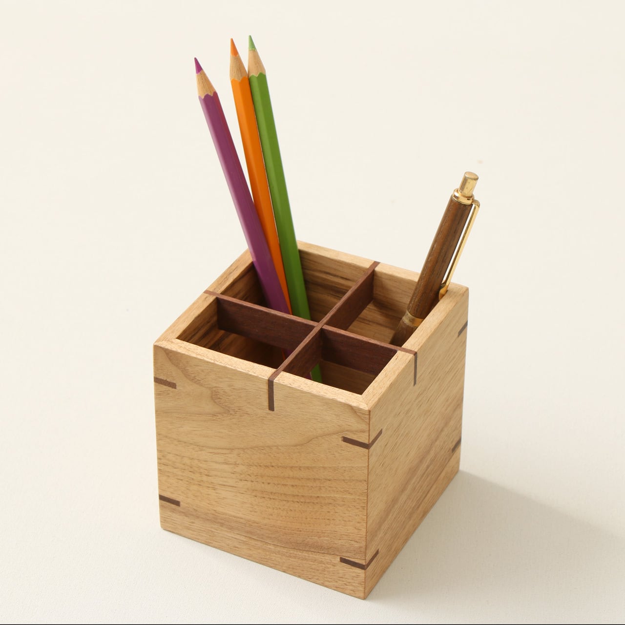 たくさんのペンをスッキリきれいに収納できるペン立てです。